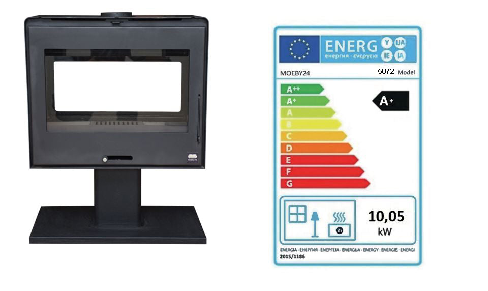 2-Scheiben Design-Kaminofen Klassik Kamin Ofen Kaminofen EcoDesign 10,5kW EEK A+ 130mm