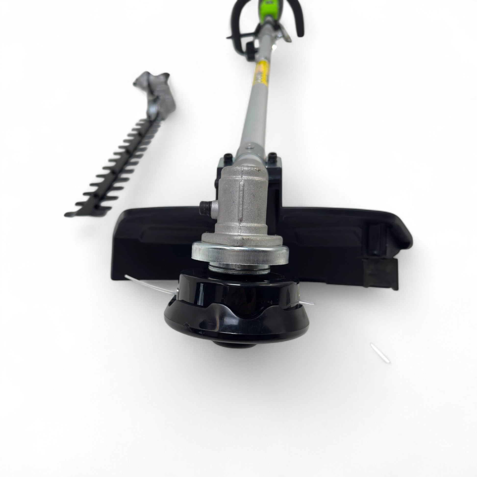 4in1 Akku-Multifunktion Gartengerät Rasentrimmer, Motorsense, Heckenschere, Hochentaster 2x Akku, Doppelladegerät