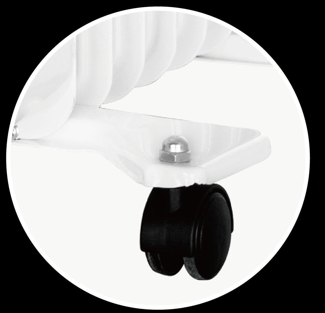 Ölradiator sehr mobil. So kann er ganz einfach in verschiedenen Räumen genutzt werden.