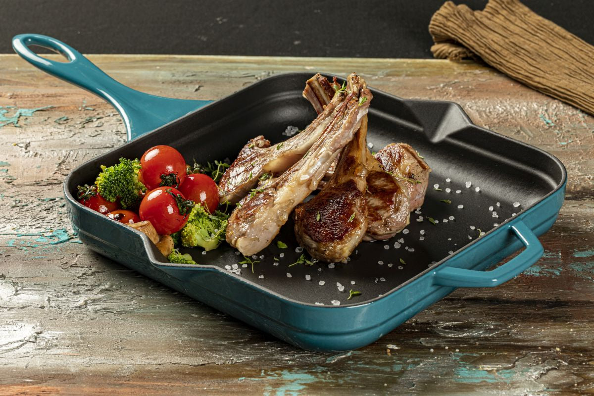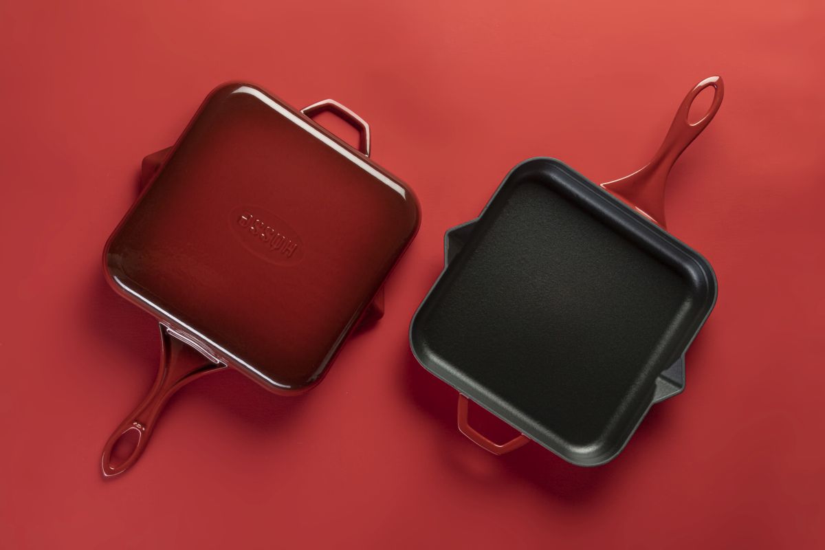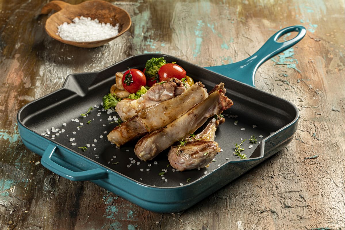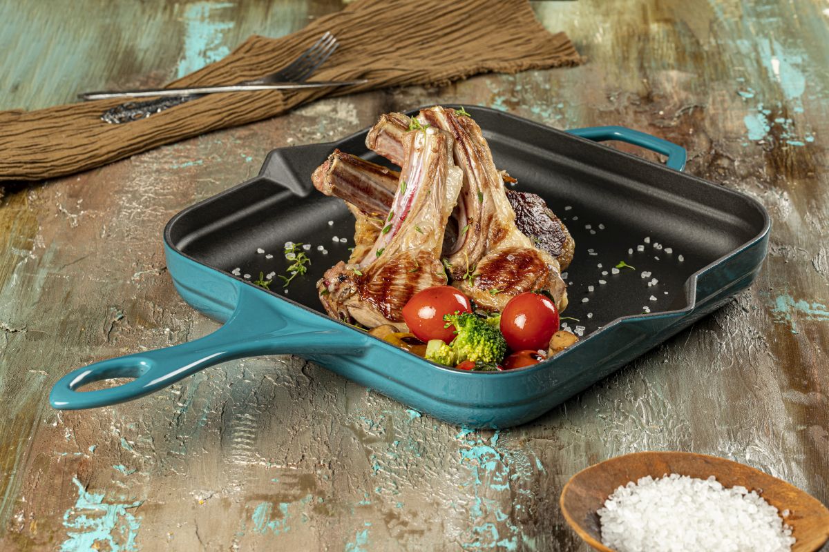 Die Emaille-Beschichtung sorgt dafür, dass absolut jedes Stück Fleisch bis zur Perfektion knusprig angebraten werden kann,