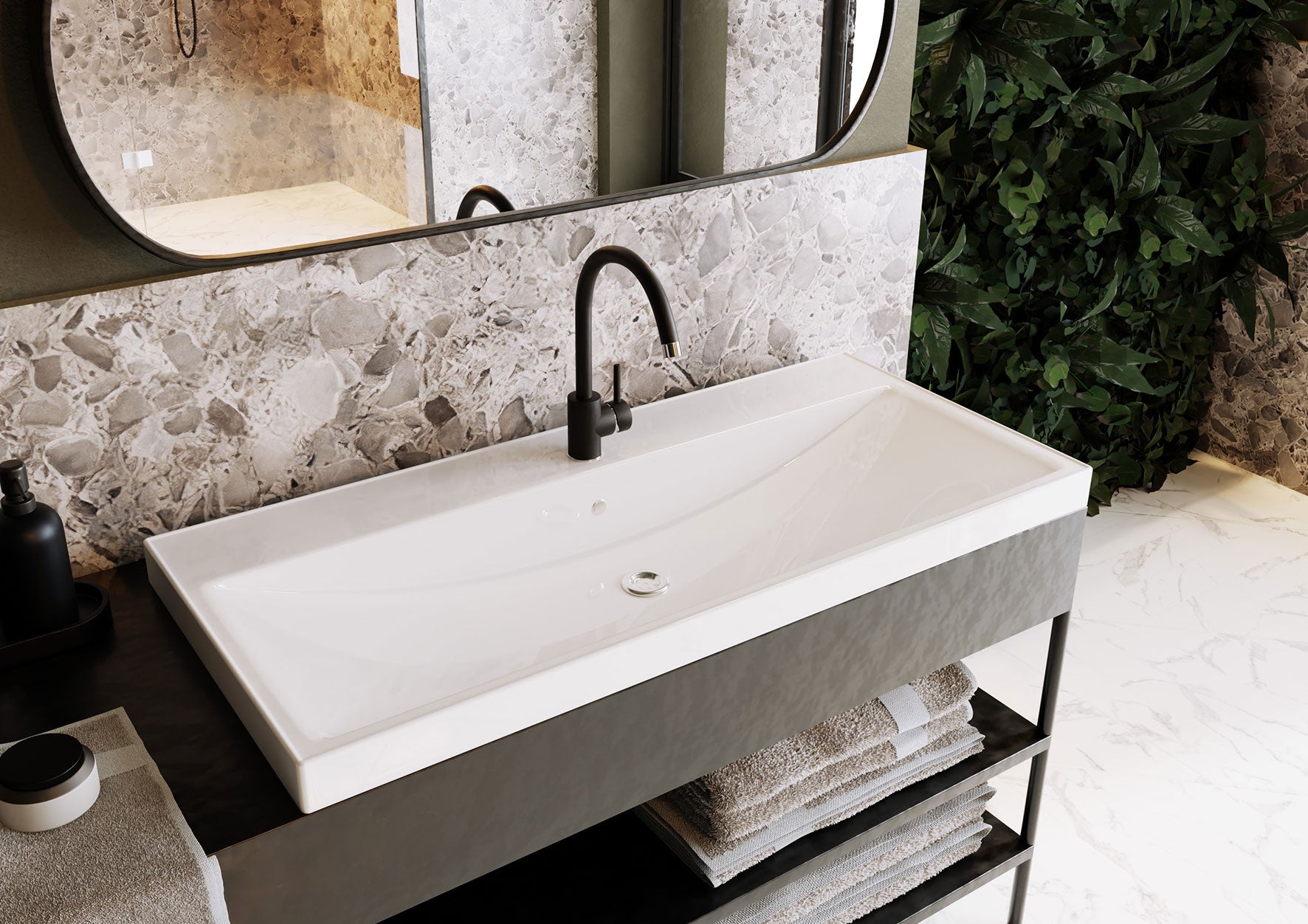 Keramik Waschtisch Waschbecken Einbau Waschbecken Wasch Tisch weiß 100x42,5x15