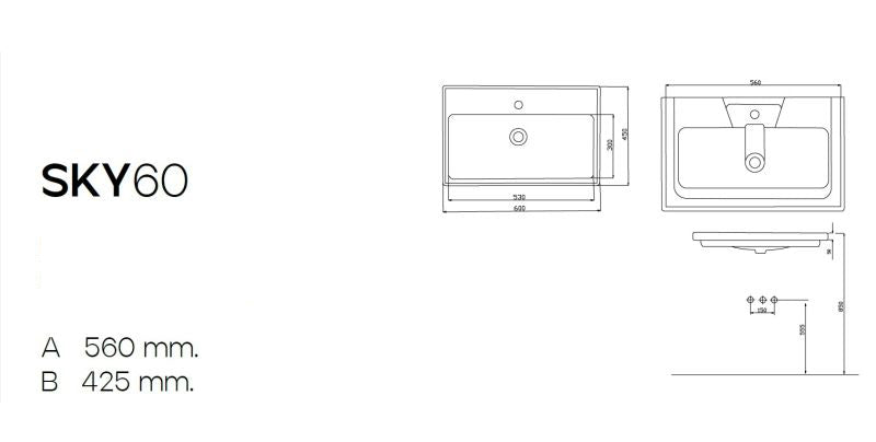 Keramik Waschtisch Waschbecken Einbau Waschtisch Wasch Tisch weiß 60x44,5x15 cm