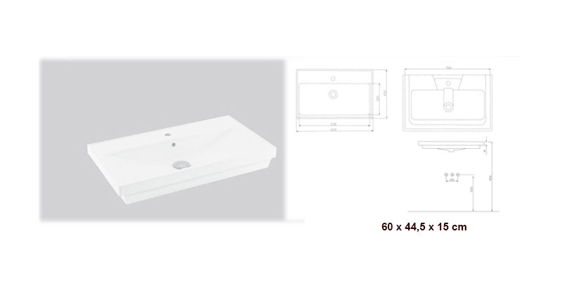 Keramik Waschtisch Waschbecken Einbau Waschtisch Wasch Tisch weiß 60x44,5x15