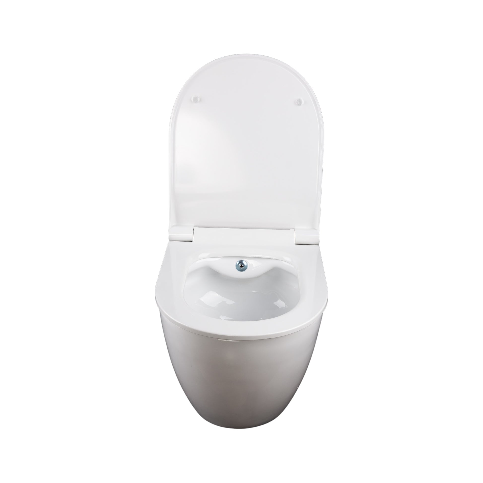Inkl. in der Keramik verbautem Kaltwasser-Ventil (Armatur). Auf Wunsch mit Warmwasseranschluss.