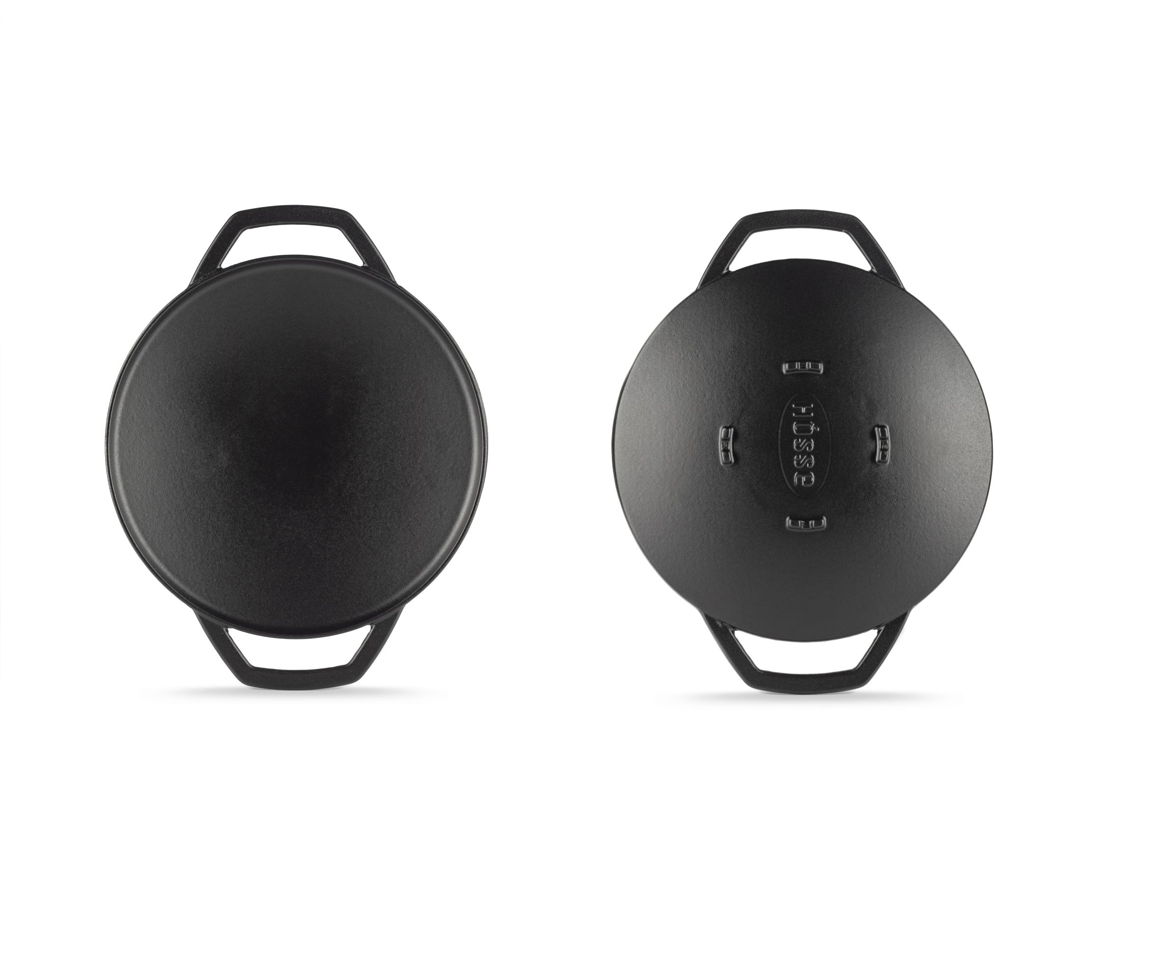 WOK Pfanne aus Gusseisen mit zwei Seitengriffen Induktion 28cm Durchmesser