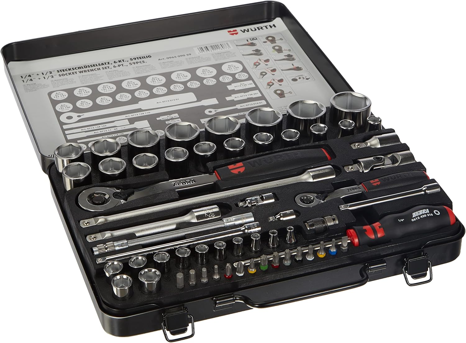 Würth Zebra Steckschlüssel 1/2 Zoll und 1/4 Zoll 59-teiliges Sortiment
